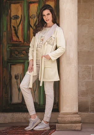 ЖЕНСКИЙ КОМПЛЕКТ ТРОЙКА: ХАЛАТ, КОФТА И БРЮКИ